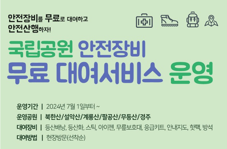 국립공원 안전장비 무료 대여안내
