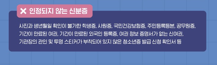 - 대리 수령은 직계 가족 아이디로 예매한 경우에만 허용됩니다. 예매자가 실물 신분증과 수령자의 본인의 실물 신분증, 가족관계를 증명할 수 있는 확인서(가족관계증명서, 의료보험증, 주민등록등본 등)를 반드시 지참해 주시기 바랍니다.