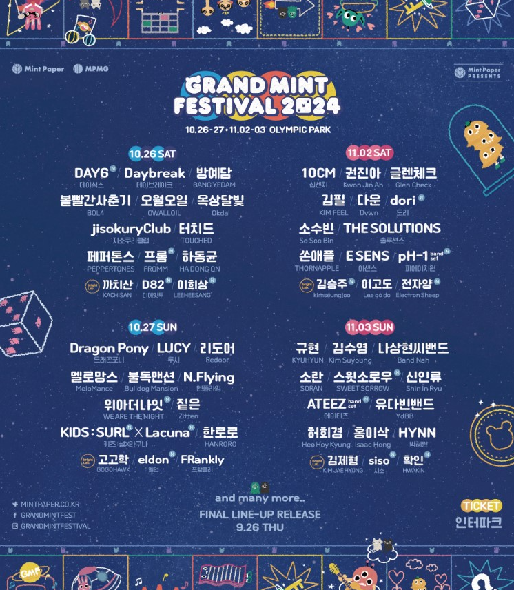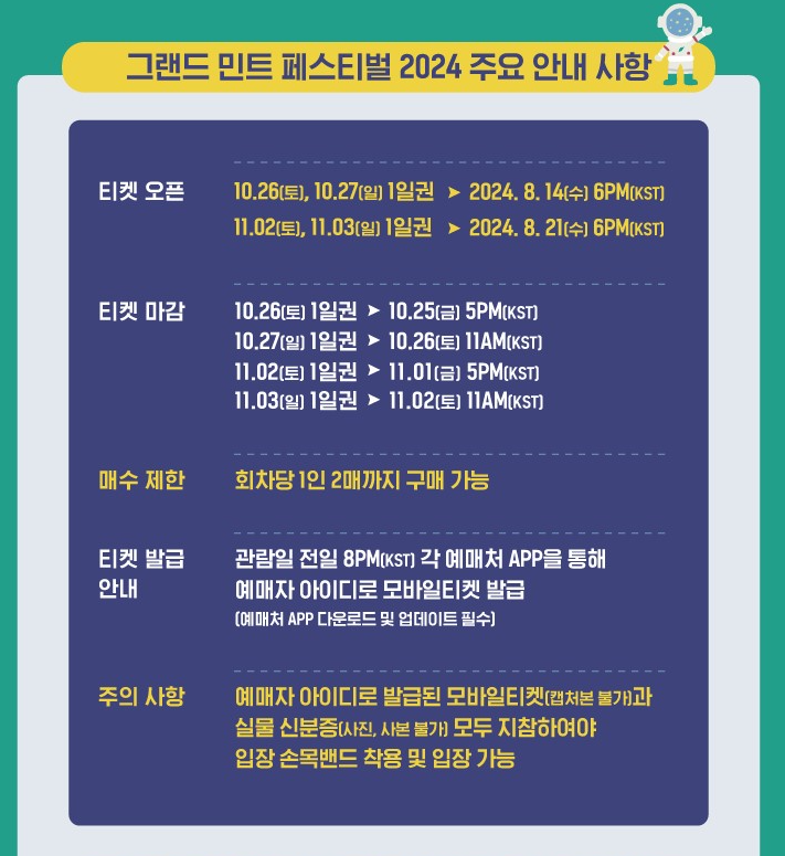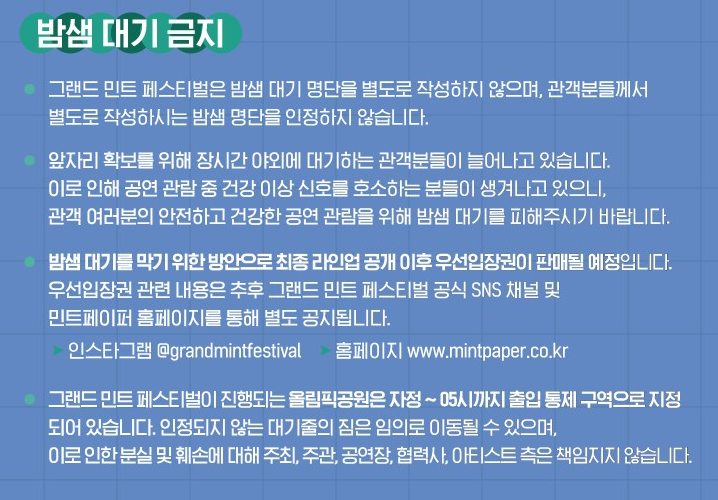 그랜드 민트 페스티벌 2024 공연일정 출연진 예매방법 입방방법 이벤트 정보 총정리