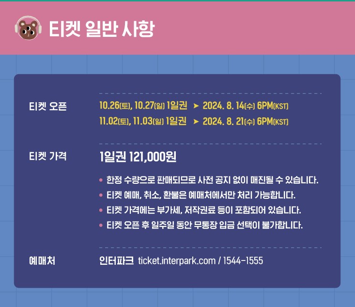 - 티켓은 한정 수량 소진 시 조기 마감될 수 있습니다.