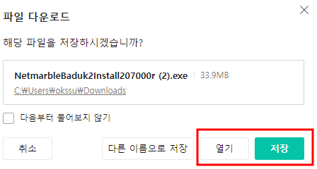 ‘다운로드’ 버튼을 클릭하여 설치 파일을 PC에 저장합니다. - 설치 및 실행