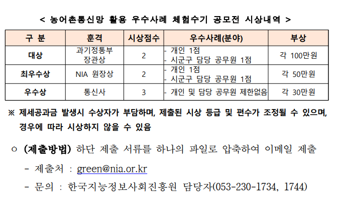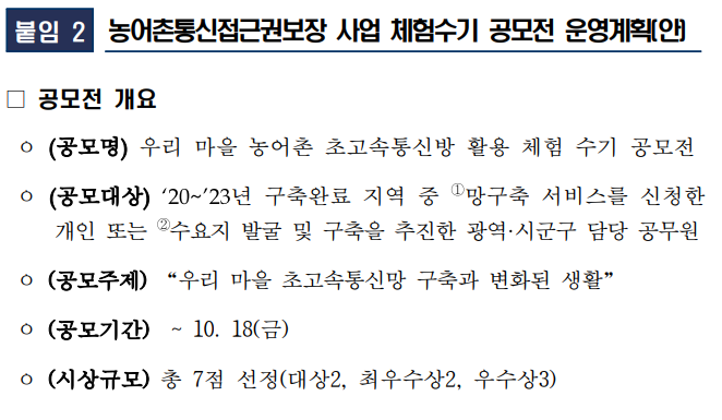 농어촌 초고속 통신망 활용 우수사례 체험수기 공모전 신청방법 신청기간 시상내역 운영방안 총정리