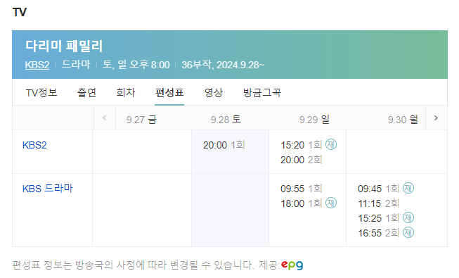 다리미 패밀리 편성표