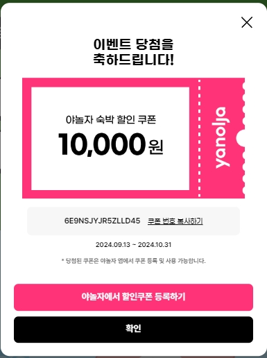 야놀자 이벤트 쿠폰 정보
