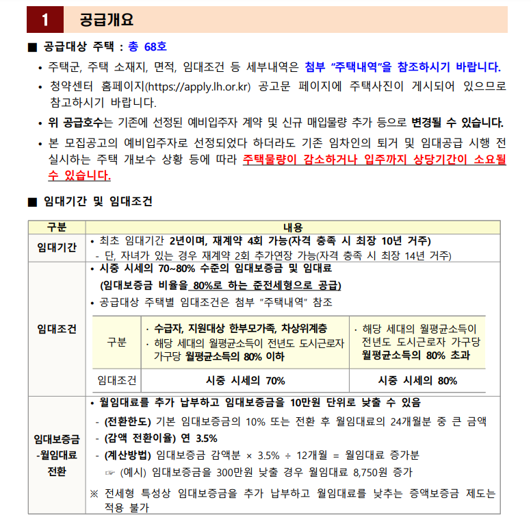 - 신청 방법: 인터넷 또는 모바일 앱(LH청약플러스)로 신청 가능합니다.