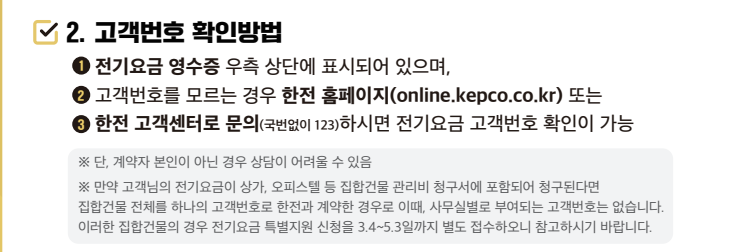 - 신청 내용이 사실과 다르거나 잘못된 지원이 이루어진 경우, 소상공인 전기요금 지원 지원금은 환수될 수 있습니다.
