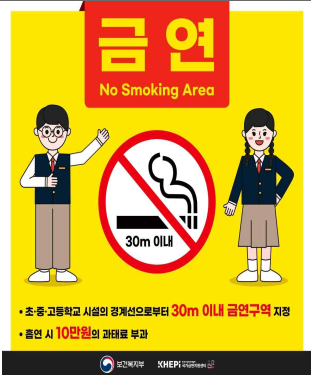 기존에는 어린이집 및 유치원 주변 10m 이내가 금연 구역으로 지정되어 있었으나, 최근 국민건강증진법 개정에 따라 금연 구역이 30m로 확대되었습니다. 또한, 초중등교육법에 따라 학교 주변 30m도 금연 구역으로 새롭게 지정되었습니다. 그래서 교육 시설 주변에서의 흡연이 더욱 엄격히 제한되는 것입니다.
