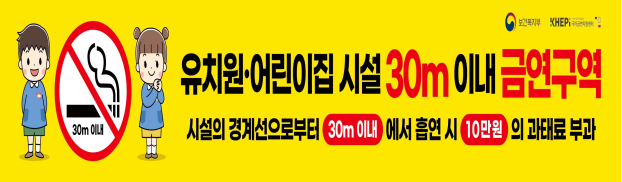 보건복지부(장관 조규홍)는 8월 17일(토)부터 어린이집, 유치원, 초·중·고교 경계 30m 이내까지 금연 구역으로 지정되고, 해당 구역에서 흡연 시 10만 원 이하의 과태료가 부과된다고 밝혔다.