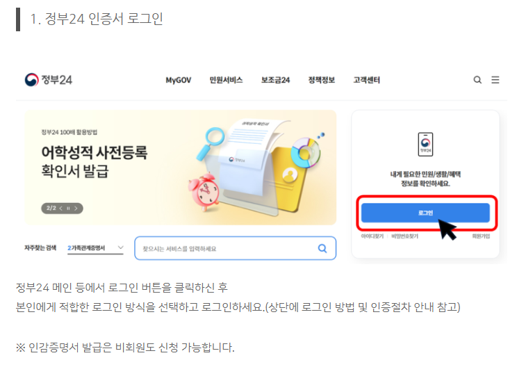 - 정부24 접속: 먼저 PC에서 정부24 웹사이트에 접속합니다.