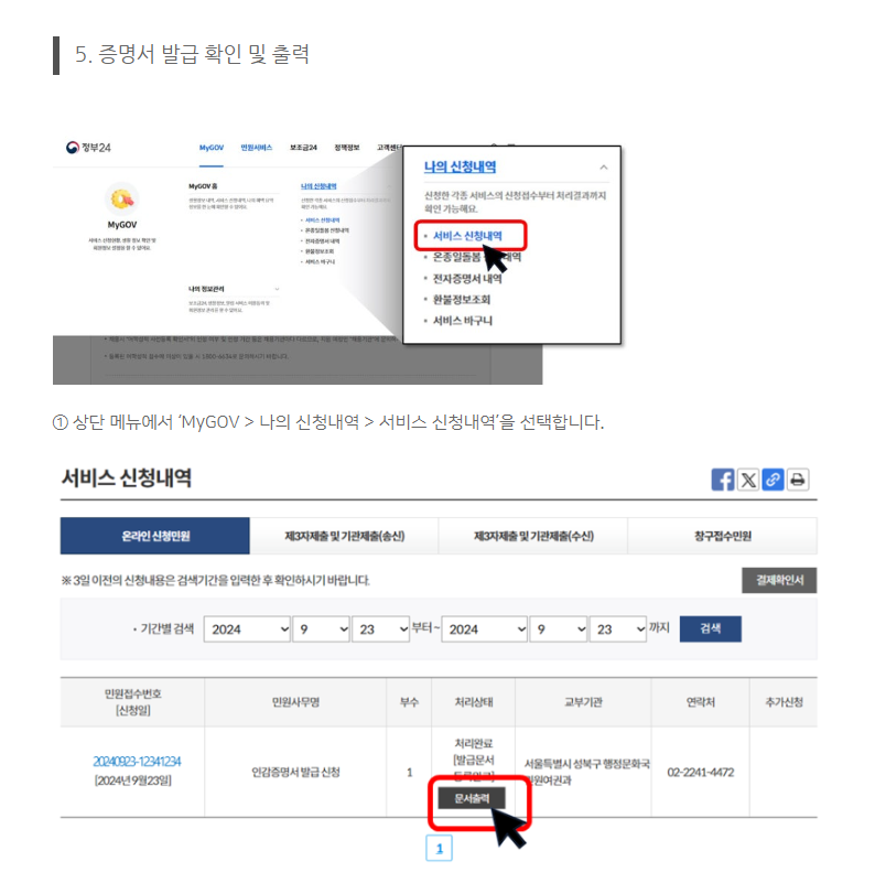 - 발급 완료 후 국민비서 알림 서비스나 문자 메시지로 발급 사실 통보