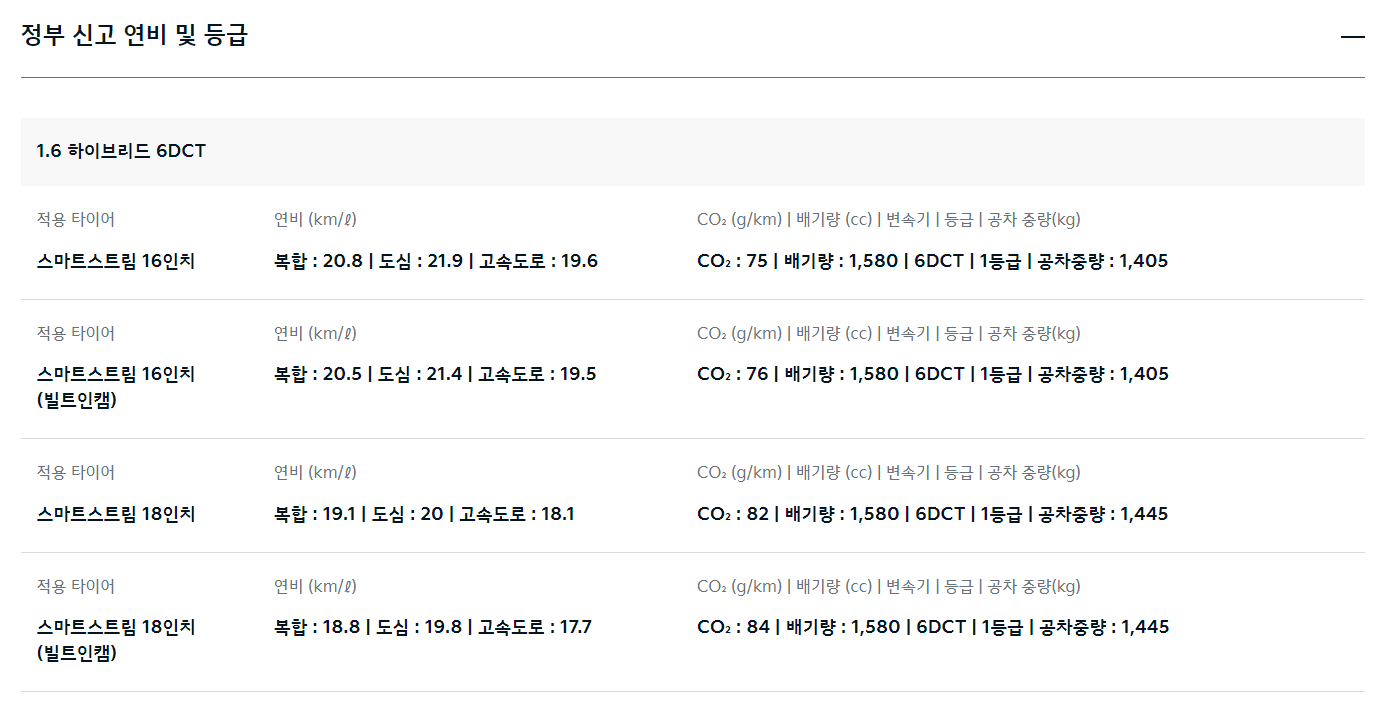 - 성능: 1.6L 4 기통기통 엔진과 전기 모터를 결합하여 총 139마력을 제공해요.