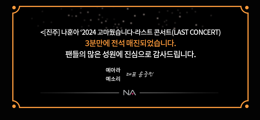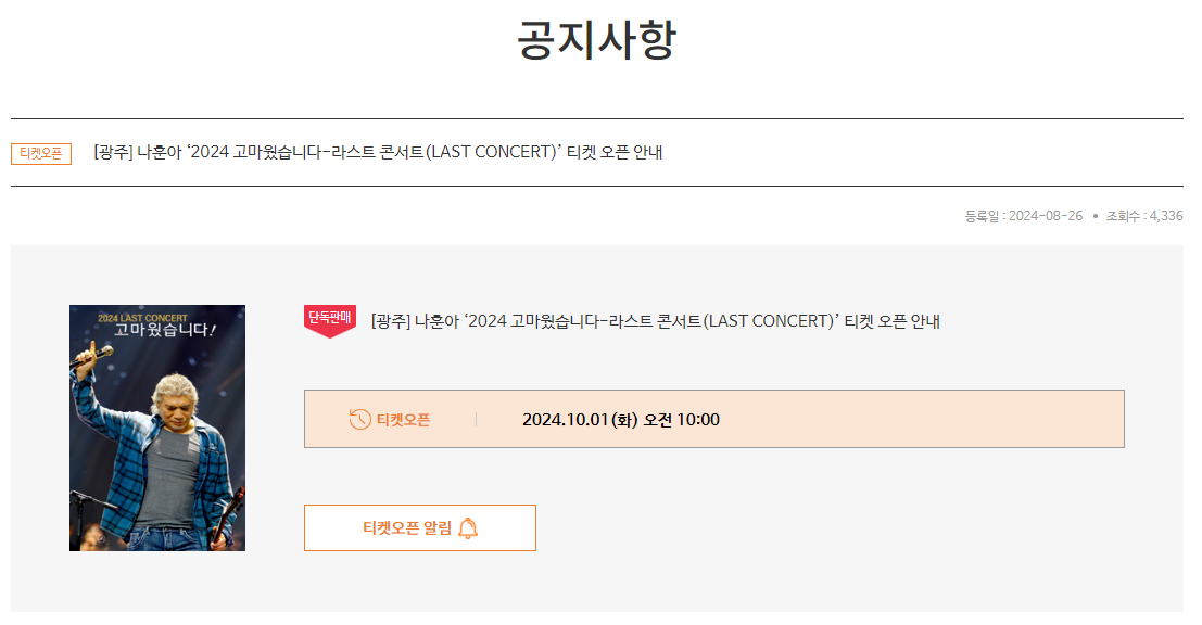 - 공연명: 나훈아 2024 고마웠습니다 라스트 콘서트 – 광주